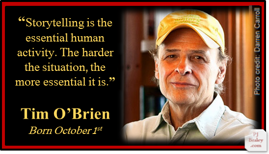 William Timothy "Tim" O'Brien, American writer. Recipient of the National Book Award for Fiction (1979), and The Richard C. Holbrooke Distinguished Achievement Award (2012).